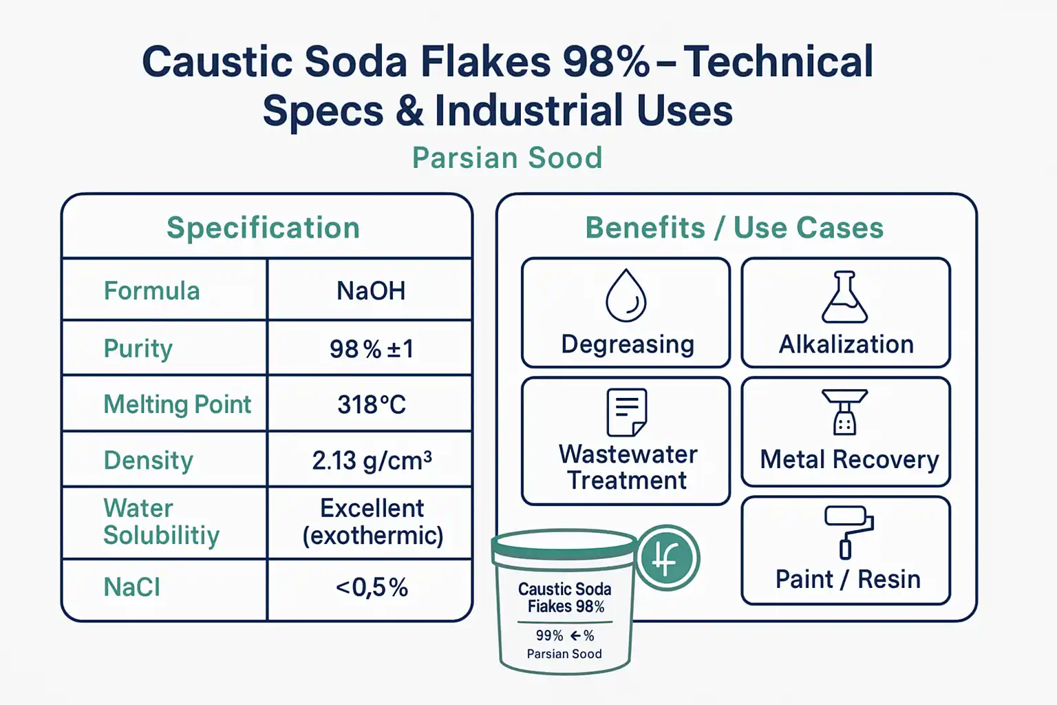 سود سوزآور 98 درصد که با نامهای «سود پرک» یا «هیدروکسید سدیم پرک ۹۸٪» هم شناخته میشود، محصولی استراتژیک با خلوص بالا، پایداری شیمیایی و قدرت واکنش سریع که پایه بسیاری از صنایع مهم کشور و صادرات محسوب میشود.